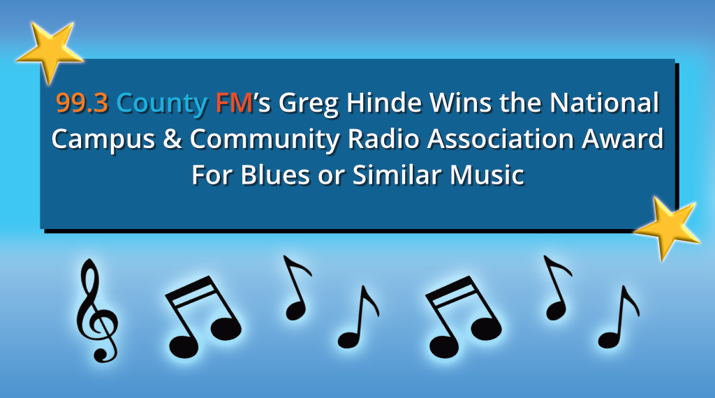Greg Hinde – “I am extremely proud to be a member of the 99.3 County FM family. It is an enormous honour to represent our station on a National level. Just like all of our volunteers I work very hard to make Sideroads a program that listeners can enjoy. Being selected as winner in my category fills me with pride and validates my efforts. I thank the entire 99.3 County FM team, my family and of course, our listeners for all of the support”.